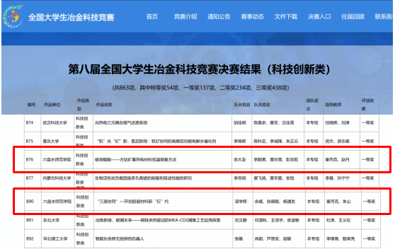 全国大学生冶金科技竞赛官网公布的获奖名单(部分)